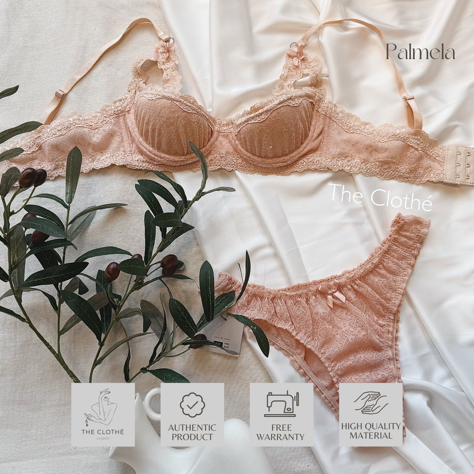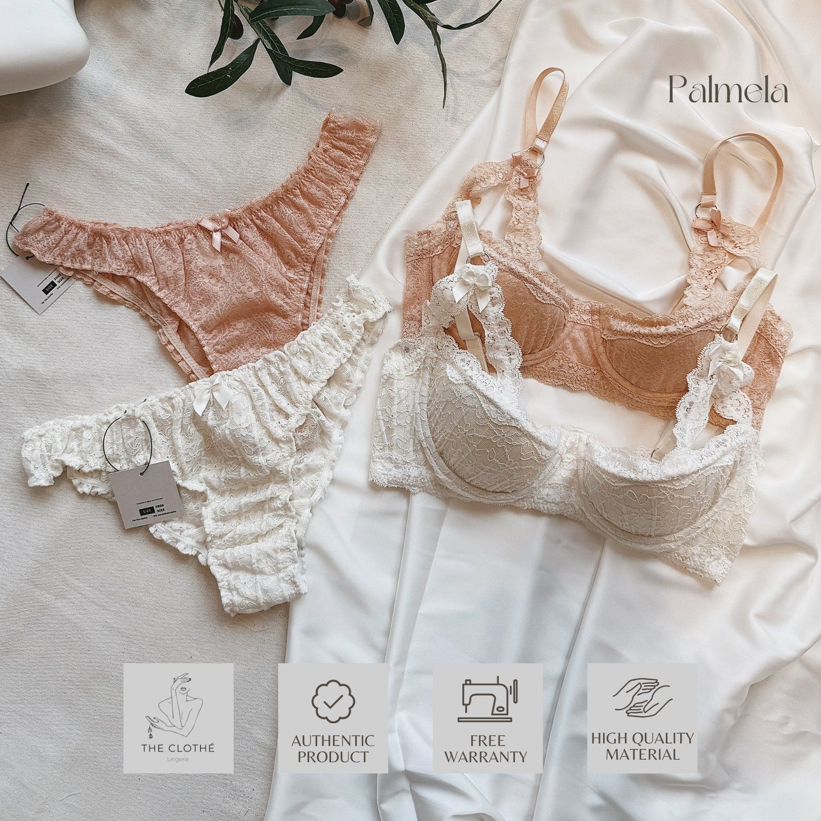 New Arrival | Lace Palmela với 2 tông màu kem và hồng mang đến nét đẹp tuyệt đối đáng yêu dành cho các nàng thơ của The Clothé mùa thu này. Sản phẩm có gọng, mút mỏng, cúp 1/2 mang đến vẻ quyến rũ, khóa sau 3 cỡ linh đông. Panty của Palmela được thiết kế theo dáng tanga nhún xinh xắn và năng động.